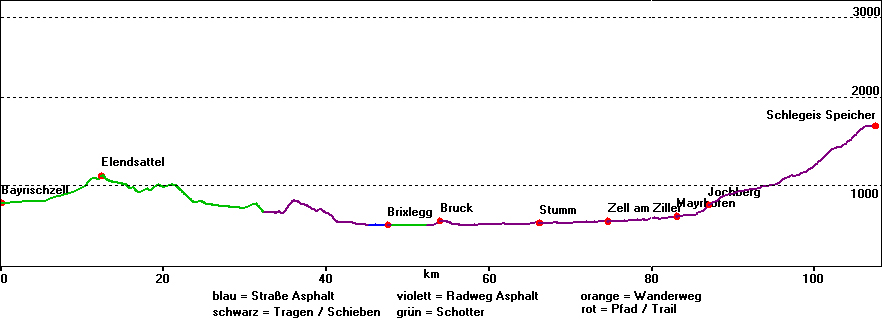 | Höhenmeter bergab: | 1388 Hm | Schotter: | 36,51 km | 34,0 | Streckenanteil eben: | 23,69 km | ||||||