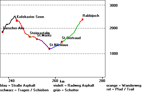 | Reine Fahrzeit: | 3:57 h | Schieben: | 6,06 km | 17,7 | Maximale Höhe: | 2614 m (ü. NN) | ||||||