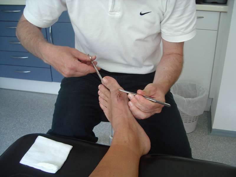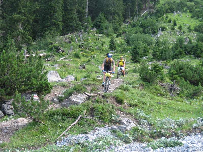 Dann ging es erstmal rund 1000 Hm auf 8 km hinab nach Dalaas. Helmut hatte ja noch immer die Fäden im Zeh und die mussten langsam raus.