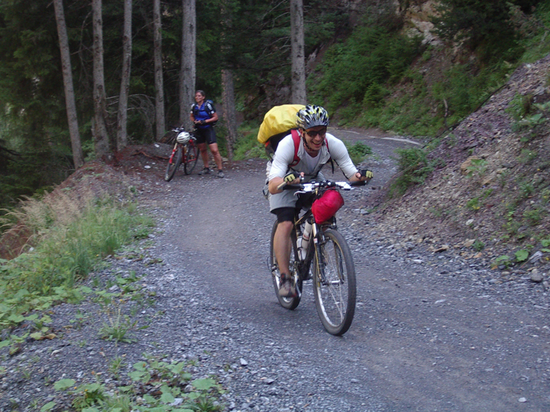 hinter uns ließen; wir waren einfach top fit. Nur ein Biker sah sich in seinem Ego gekränkt, dass wir an ihm Sonntagsfahrer ohne Rucksack mit vollem Gepäck