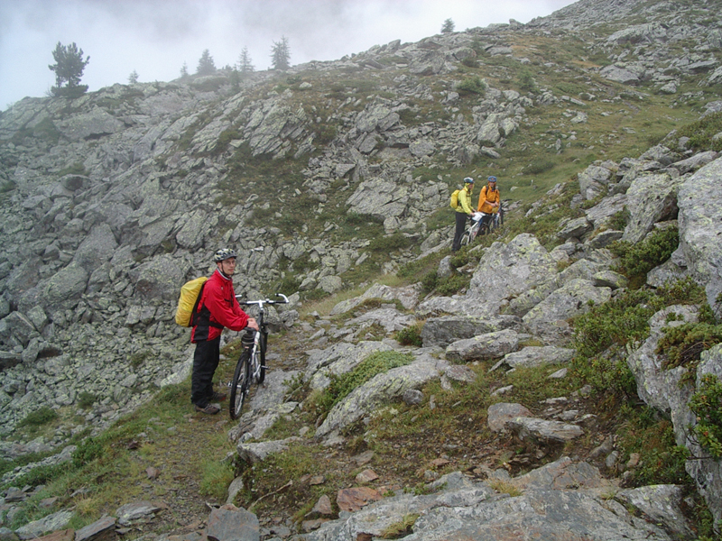 bis auf ein kleines Plateau. Von dort an wurde es dann richtig ungemütlich was den Weg anging. Hier hieß es Schieben und Tragen auf kleinen Pfaden,