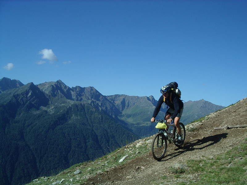 Von der Hütte ging es eine sehr schöne Abfahrt mit Trails, Kühen und allem drum und dran 1000 Hm hinab nach Rabbi.