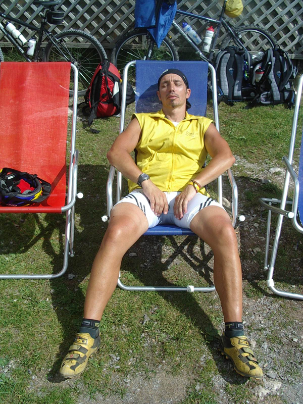 schmissen wir uns erschöpft in die dort herum stehenden Liegestühle. Na gut, Olaf hätte wahrscheinlich auch noch weitere 10 km bergauf fahren können.